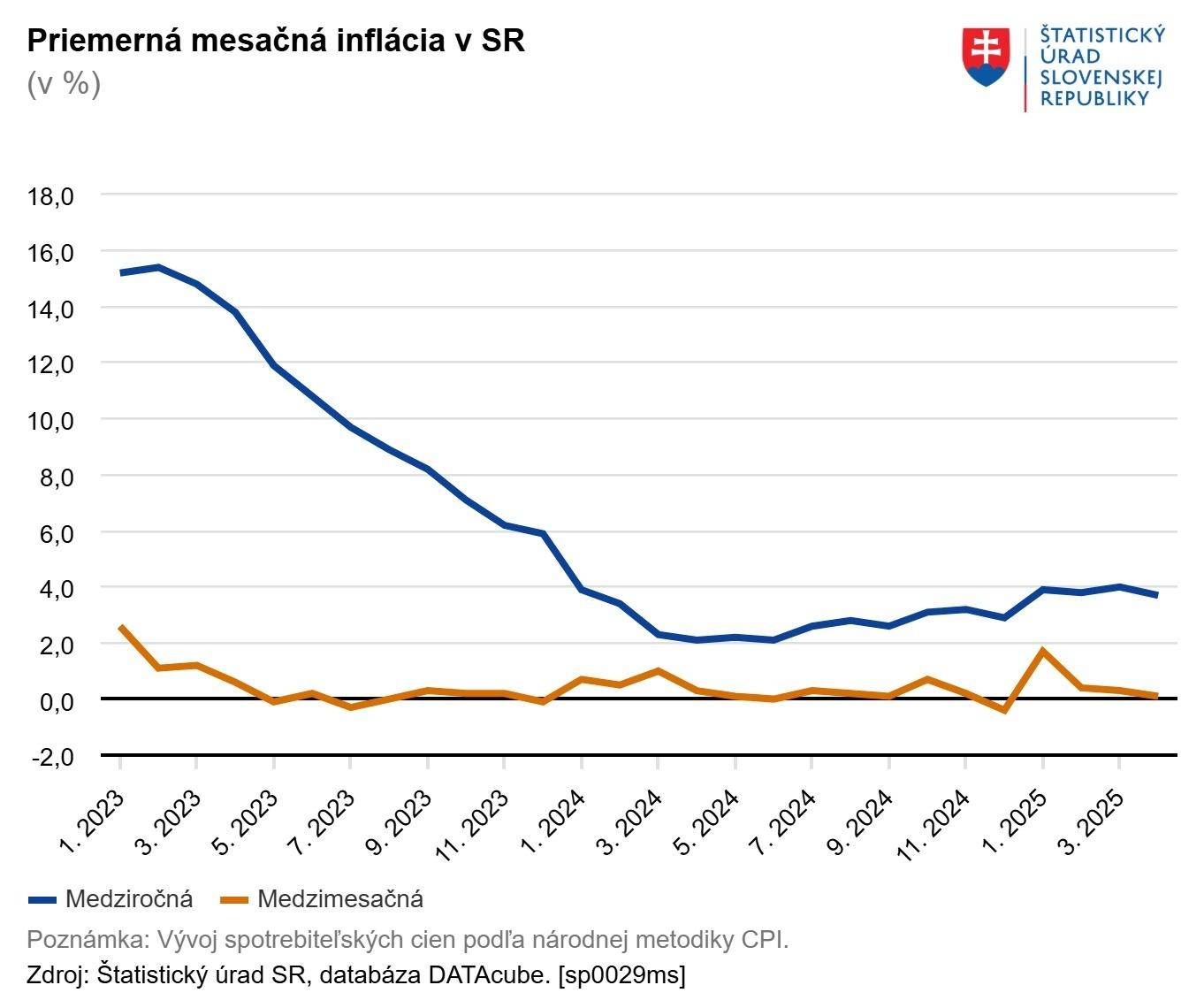 Spotrebiteľské ceny tovarov a služieb v apríli vzrástli medzimesačne o 0,1 percenta, medziročne o 3,7 percenta. Pri oboch ukazovateľoch išlo zatiaľ o najnižšiu hodnotu v tomto roku.
