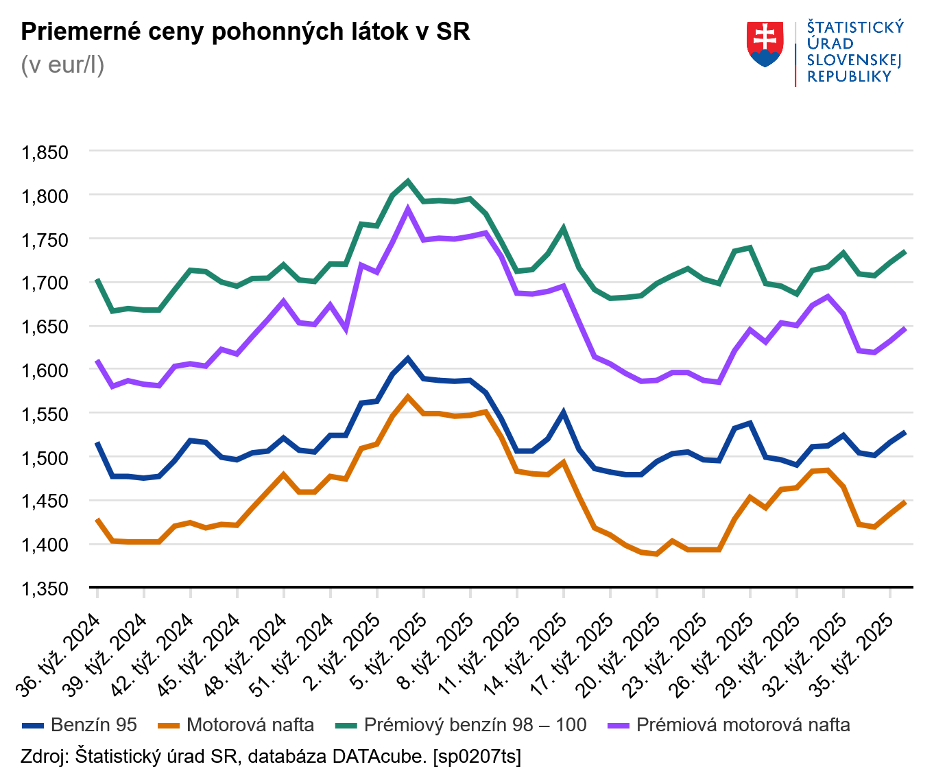 Ceny najčastejšie používaných pohonných látok počas prvého školského týždňa (36. týždeň) rástli. Cena obyčajného aj prémiových benzínov rástla druhý týždeň za sebou, dosiahla najvyššiu hodnotu od konca júna.