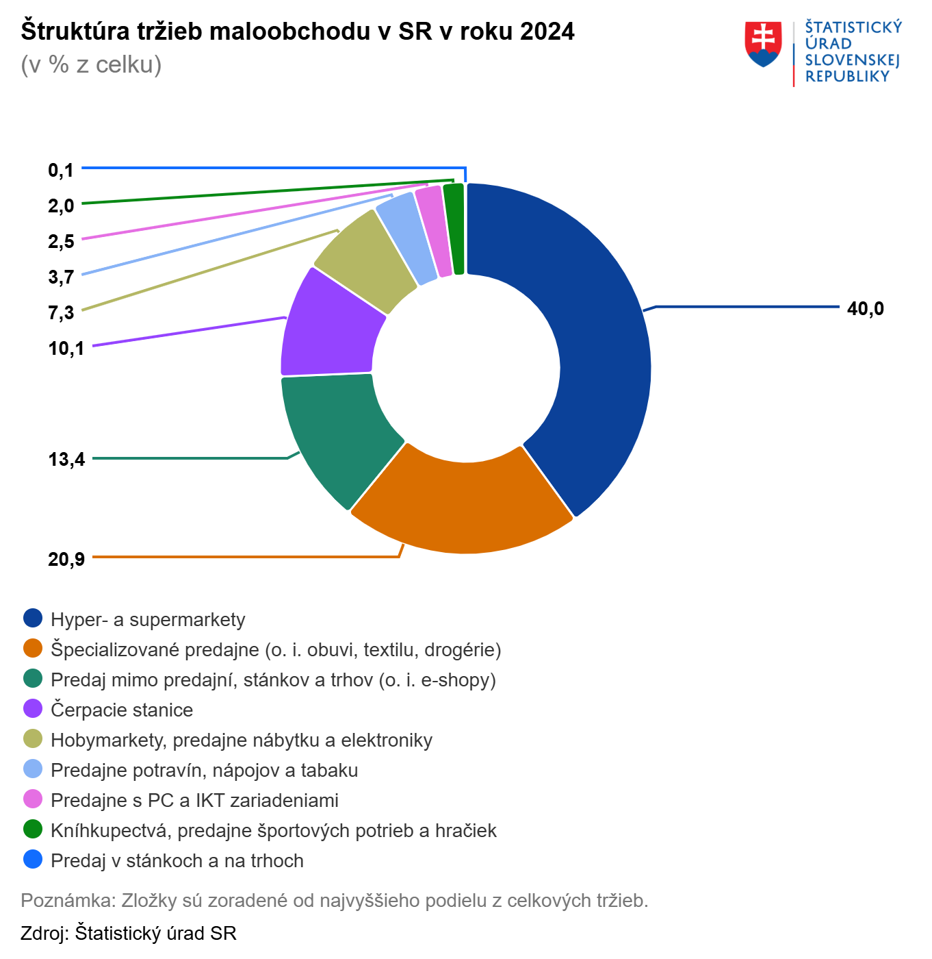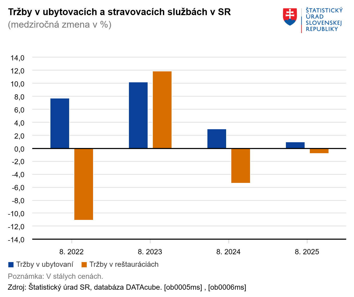 Vývoj maloobchodných tržieb na Slovensku v auguste najvýraznejšie ovplyvnil dvojciferný pokles tržieb podnikateľov, ktorí prevádzkujú e-shopy a zásielkový predaj, rovnako ako predajní potravín, nápojov a tabakového tovaru. Hypermarkety a supermarkety naopak tržby medziročne reálne o 4,4 percenta zvýšili, bol to druhý najlepší výsledok v tomto roku.