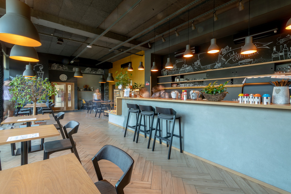 Navonok studená administratívna budova vás ráno prekvapí výbornou kávou a teplými pečivom. Kaviareň Coffee Break na prízemí ponukou i otváracími hodinami vychádza v ústrety potrebám ako zamestnancov firiem, ktoré v centre sídlia, tak i návštevníkov napríklad miestneho úradu či iných priľahlých prevádzok. Vďaka podmanivému interiéru si v nej obľubu našli aj neformálne pracovné stretnutia. „Od ôsmej do štvrtej popoludní majú zákazníci na výber nielen skvelú kávu a limonády podľa originálnych receptúr, ale samozrejme aj pestré raňajky, domáce nátierky, snacky, jogurtové poháre i dezerty, ktoré denne pripravujeme v našej kuchyni. Pri výbere nemusí robiť kompromisy ani ten, kto trpí rôznou potravinovou intoleranciou,“ vysvetľuje Adriana Husáková, riaditeľka prevádzky stredísk.