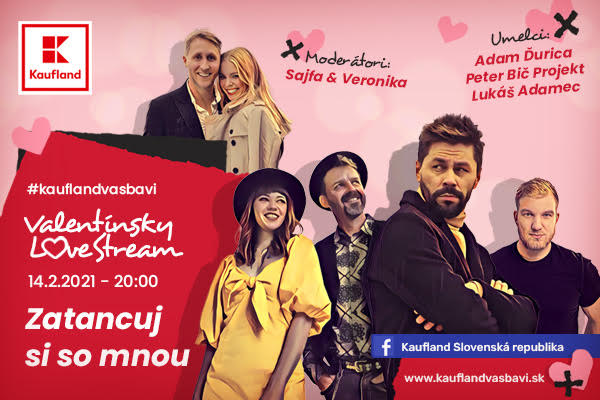 Nezabudnite si preto v nedeľu 14. 2. 2021 o 20:00 pustiť originálny L♥VE koncert na stránke www.kauflandvasbavi.sk alebo na FB Kaufland Slovenská republika.