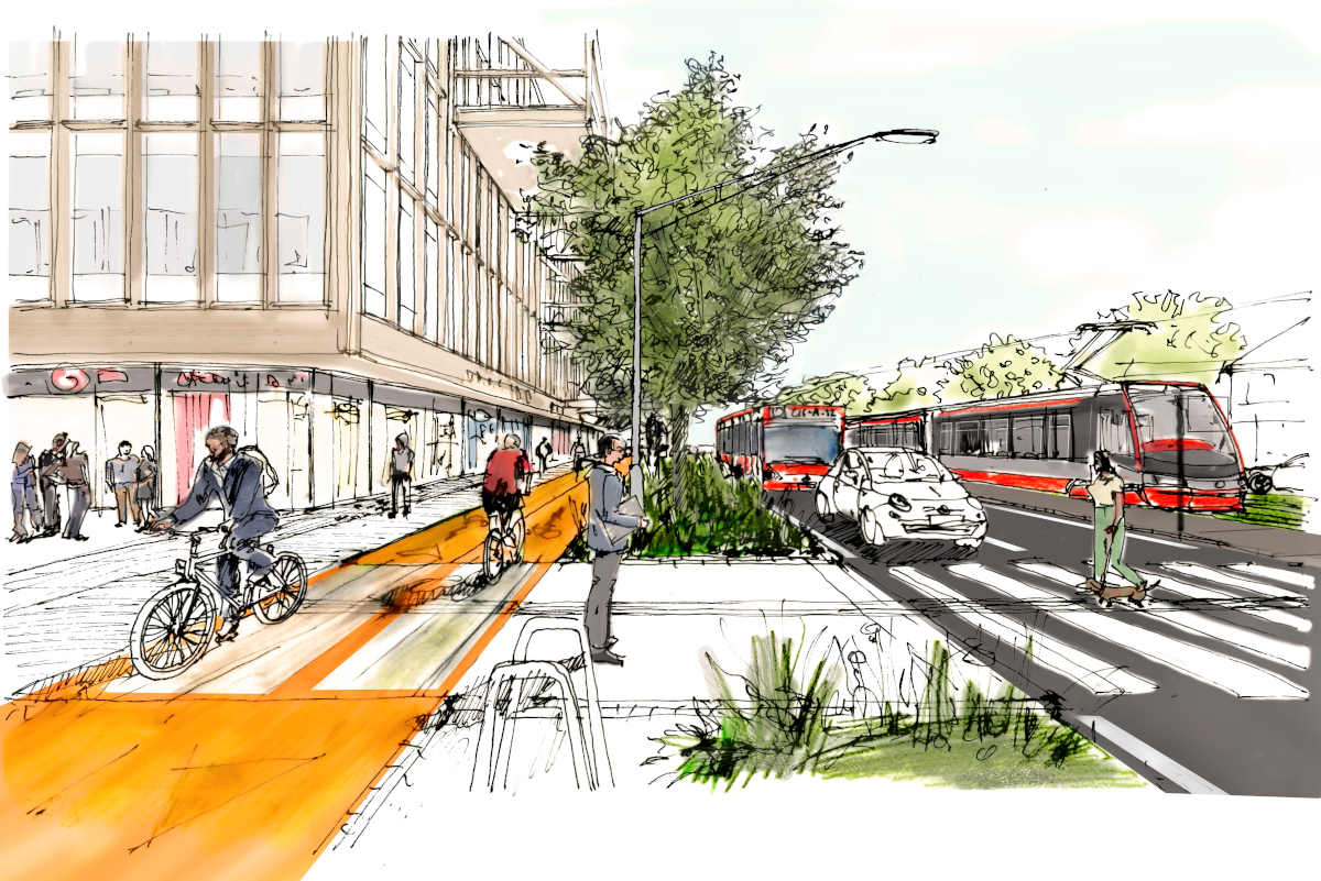 Skica Račianskej ulice pred Palmou po jej rekonštrukcii