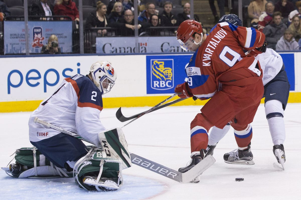 Góly: 30. Gurianov (Kvartaľnov, Karnauchov), 50. Trenin (Urakov, Beľajev). Rozhodovali: Rohatsch (Nem.), Šír (ČR) - Kohlmüller (Nem.), Vanoosten (Kan.), vylúčení: 2:3, presilovky: 1:0, oslabenia: 0:0, 5269 divákov