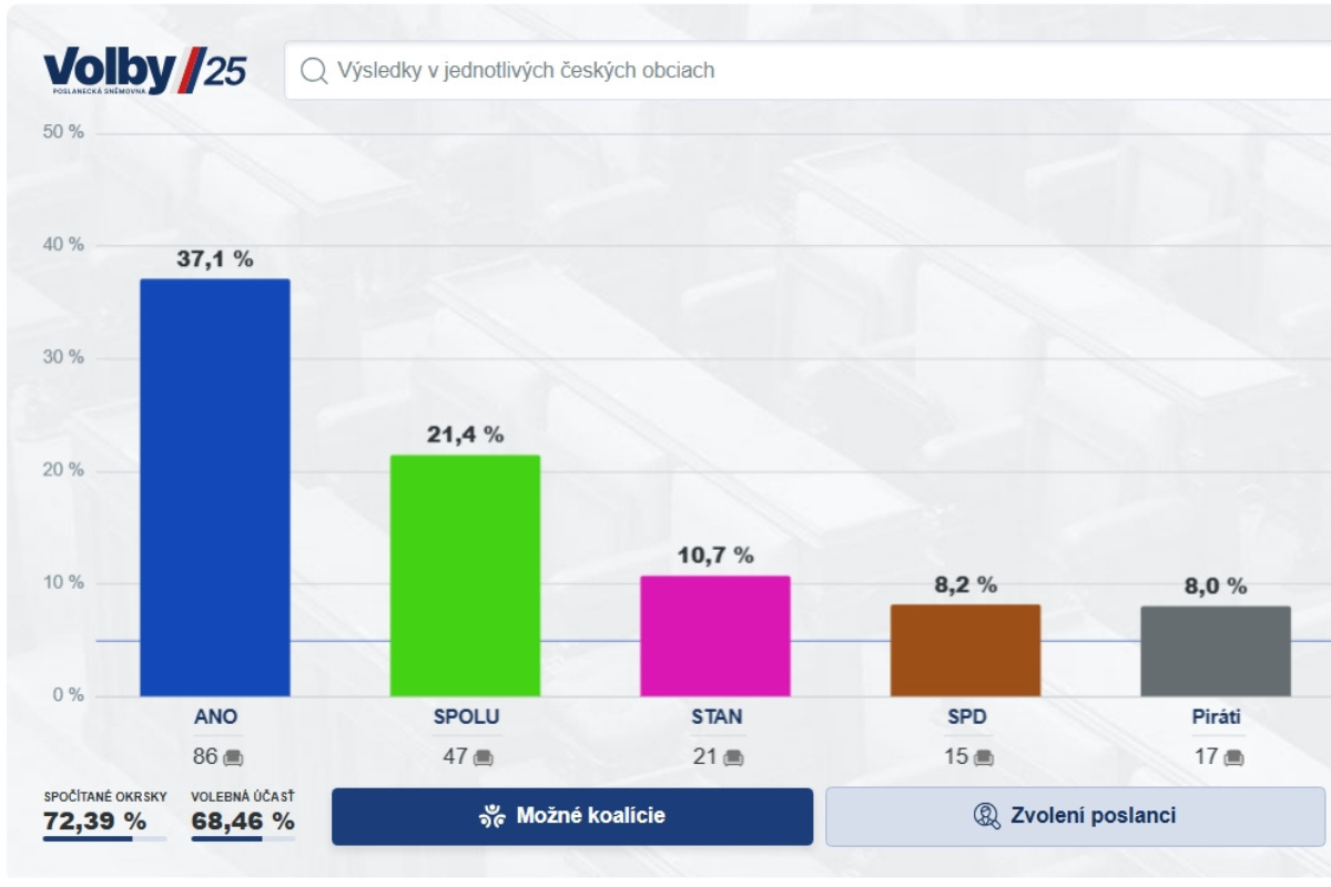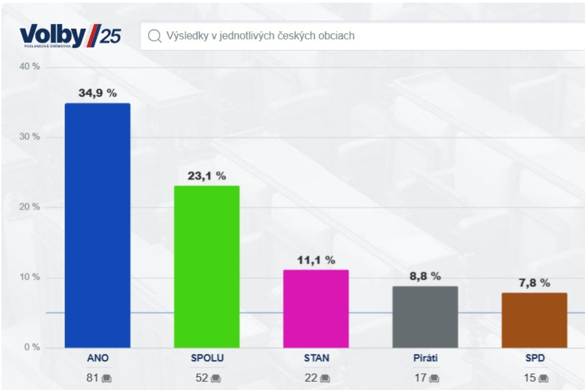 Vo voľbách do Poslaneckej snemovne českého parlamentu, ktoré sa konali v piatok a sobotu, zvíťazilo opozičné hnutie ANO expremiéra Andreja Babiša. Pred vládnou koalíciou SPOLU má pred spočítaním všetkých hlasov už nedostihnuteľný náskok.