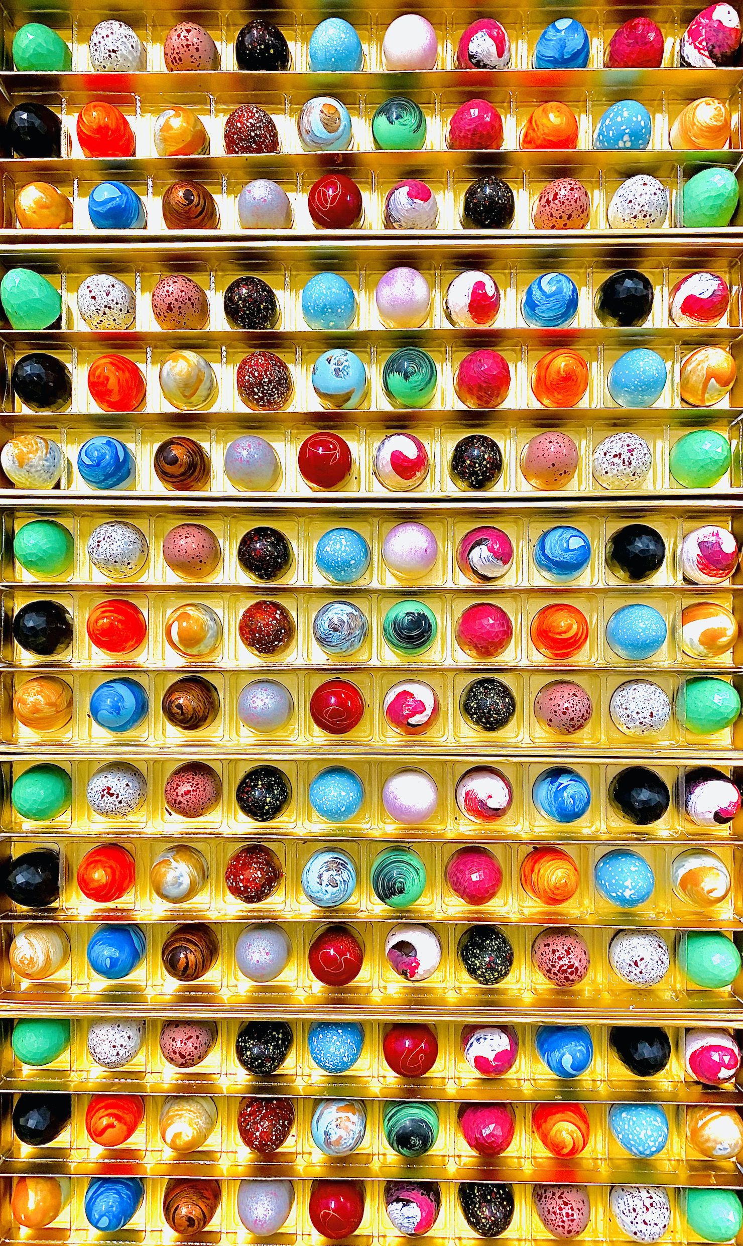 Všetky sú ručne maľované. Zuzana sa v tejto práci doslova vyžíva. „Vždy som milovala ručnú prácu, remeselnú tvorbu, je to pre mňa skutočný relax. Každá pralinka je farbená ručne a rovnako aj ďalšie produkty vrátane tabuľkových čokolád. Tam to funguje trošku inak, nefarbím ich ako pralinky, ale maľujem jednotlivé formy.“