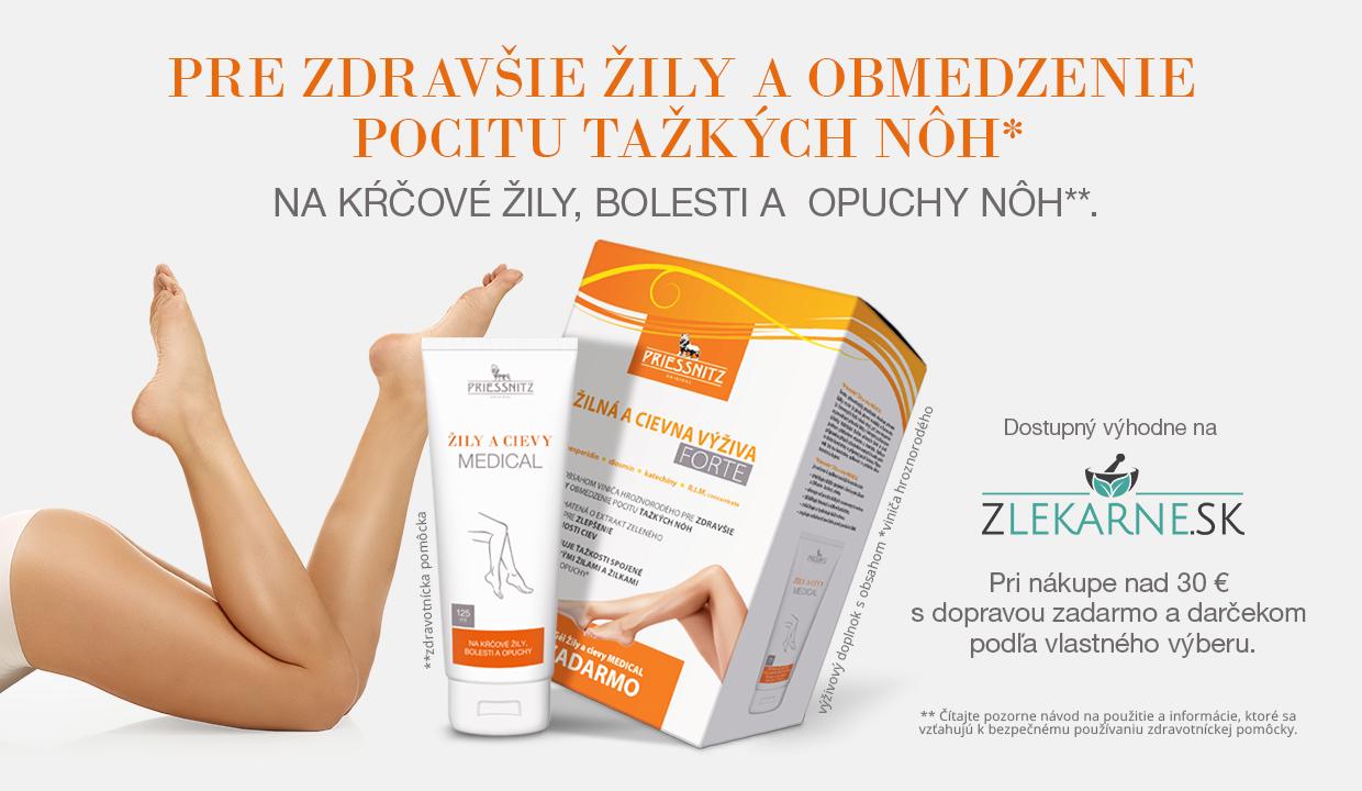 Pociťujete napätie v nohách, alebo sa u vás dokonca prejavili prvé kŕčové žily či metličkové žilky? Potom vyskúšajte osvedčený prípravok z lekárne – Priessnitz Žily a cievy Medical. Ide o gél, ktorý obsahuje unikátne zloženie, vďaka ktorému prenikajú účinné zložky ľahšie ku kapilárnym cievam a žilám a priaznivo tam pôsobia na kvalitu a funkciu žilového a lymfatického systému. Táto zdravotnícka pomôcka je ideálnou starostlivosťou pre nohy bez kŕčových žíl a opuchov. Gél perfektne bojuje aj s pocitom ťažkých a opuchnutých nôh.