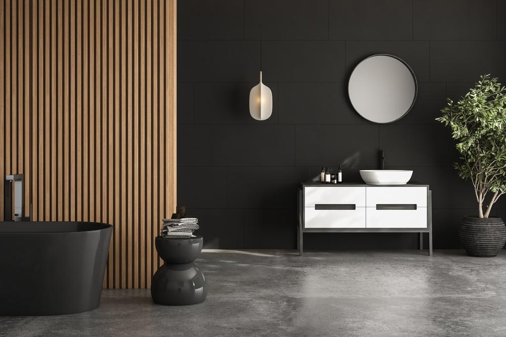 Čierna farba patrí medzi najčastejší spôsob ako oživiť kúpeľňu. Je výrazná, dodáva miestnosti hĺbku, charakter a istú tajomnosť. V kúpeľni sa s ňou stretávame v matnej podobe, čím sa podporí dojem stability a určitého stíšenia sa. Výhodou čiernej farby je, že stačí len pár prepracovaných prvkov a efekt je ohromujúci. V kúpeľni ju môžete nájsť na vodovodných batériách, úchytkách na skrinkách, na splachovacích tlačidlách, rámoch zrkadiel, ale aj na kovaní.