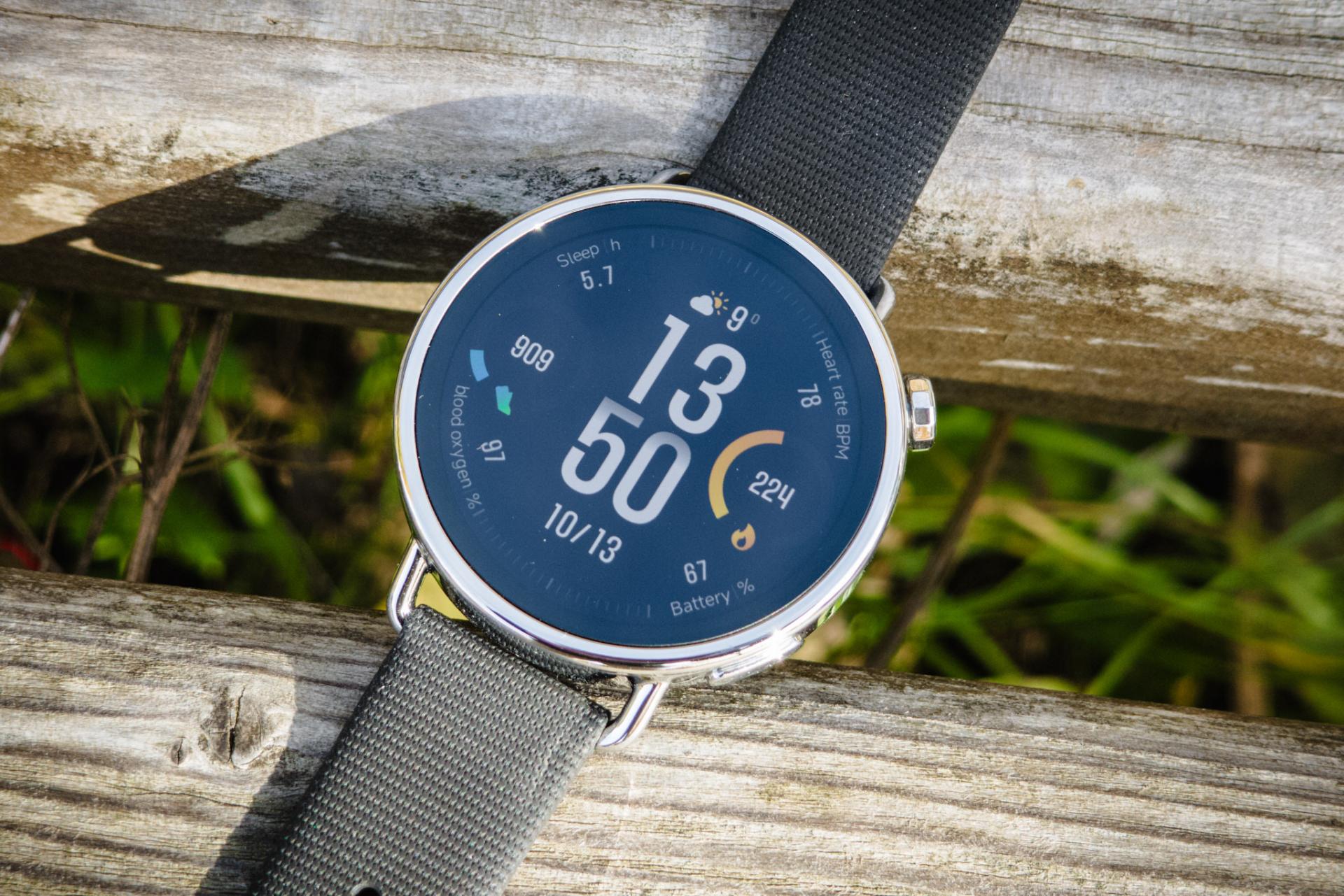 Vrchnú stranu okupuje okrúhly 1,32-palcový AMOLED displej so 60-hertzovou obnovovacou frekvenciou a s hustotou pixelov 352 na palec. Poteší aj vysoký jas 1 500 nitov, vďaka čomu jednoducho prečítate zobrazované údaje aj na slnku. Nejde síce o rekordéra, ale bez problémov sme vedeli hodinky využívať. Po obvode vidíme kruhové puzdro s príjemným zaoblením hrany, ktoré je zvyčajne strieborné s výnimkou zlatej verzie.