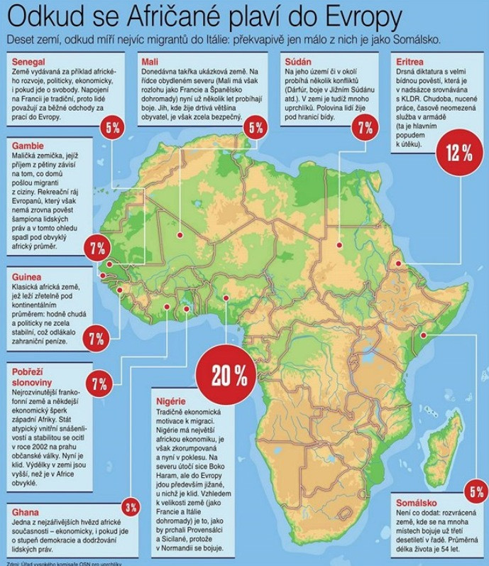 Má to logiku. "To, že najviac zastúpení sú Nigérijčana, nesúvisí s Boko Haram. Na cestu sú potrebné peniaze, nie všetci tí ľudia sú zúfalci," hovorí český veľvyslanec v Nigérii Pavel Mikeš. "Vedia, kam idú a prečo tam chcú ísť."