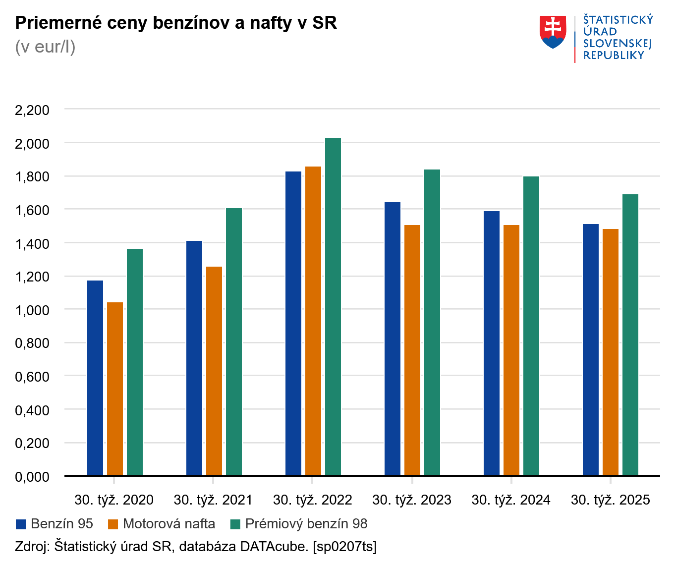 Ceny pohonných látok v závere júla vzrástli. Benzíny sa v 30. týždni predávali za najvyššie ceny od začiatku letných prázdnin, za naftu motoristi platili najviac za posledné štyri mesiace.