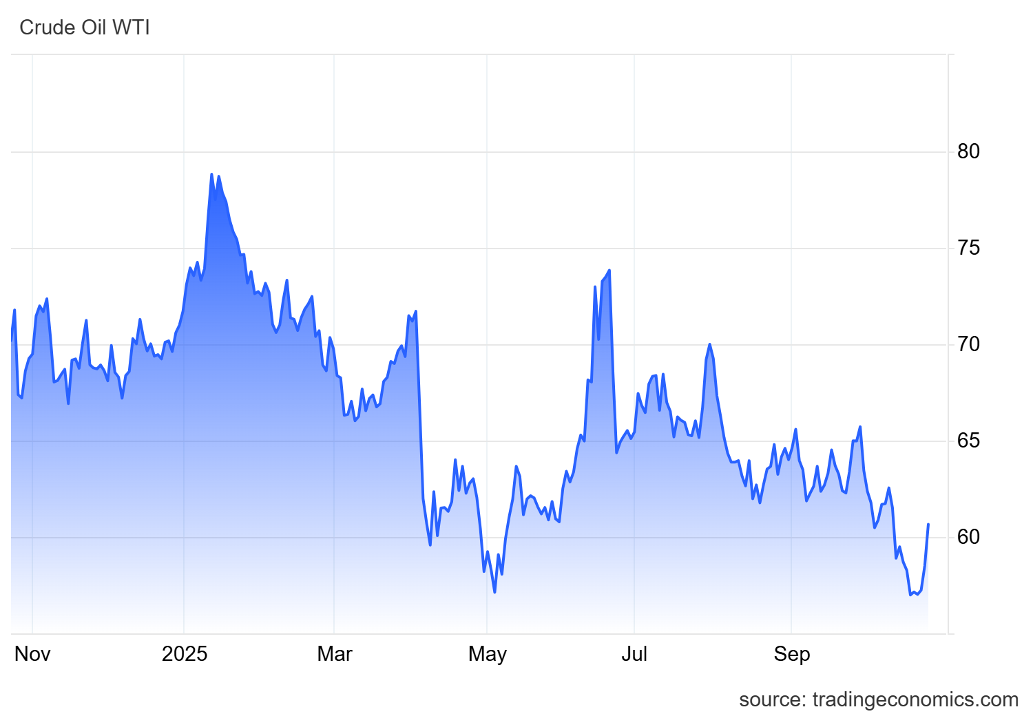 Cena americkej ľahkej ropy WTI, rovnako s decembrovým kontraktom, dosiahla 61,79 USD/barel. V porovnaní s predchádzajúcou uzávierkou to predstavuje zvýšenie o 3,29 USD (5,62 percenta).