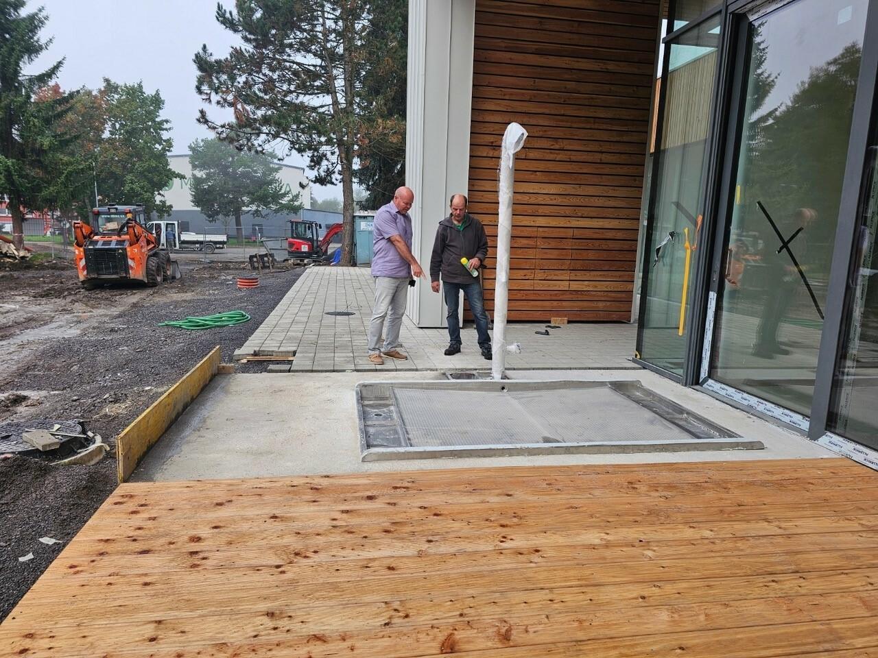 Mesto má spracovaný projekt aj na prepojenie plavárne s priľahlým exteriérom. Návštevníci si budú môcť vyjsť von na trávnatú plochu a zahrať si volejbal, bedminton, minigolf a šach, alebo si oddýchnuť na ležadlách. Súčasťou projektu sú aj 2 dažďové záhrady vysadené vhodnými rastlinami. V priestore bude vybudovaný objekt s využitím na súkromné grilovanie a pre gastroprevádzky. Pre deti sa počíta s menším detským ihriskom.