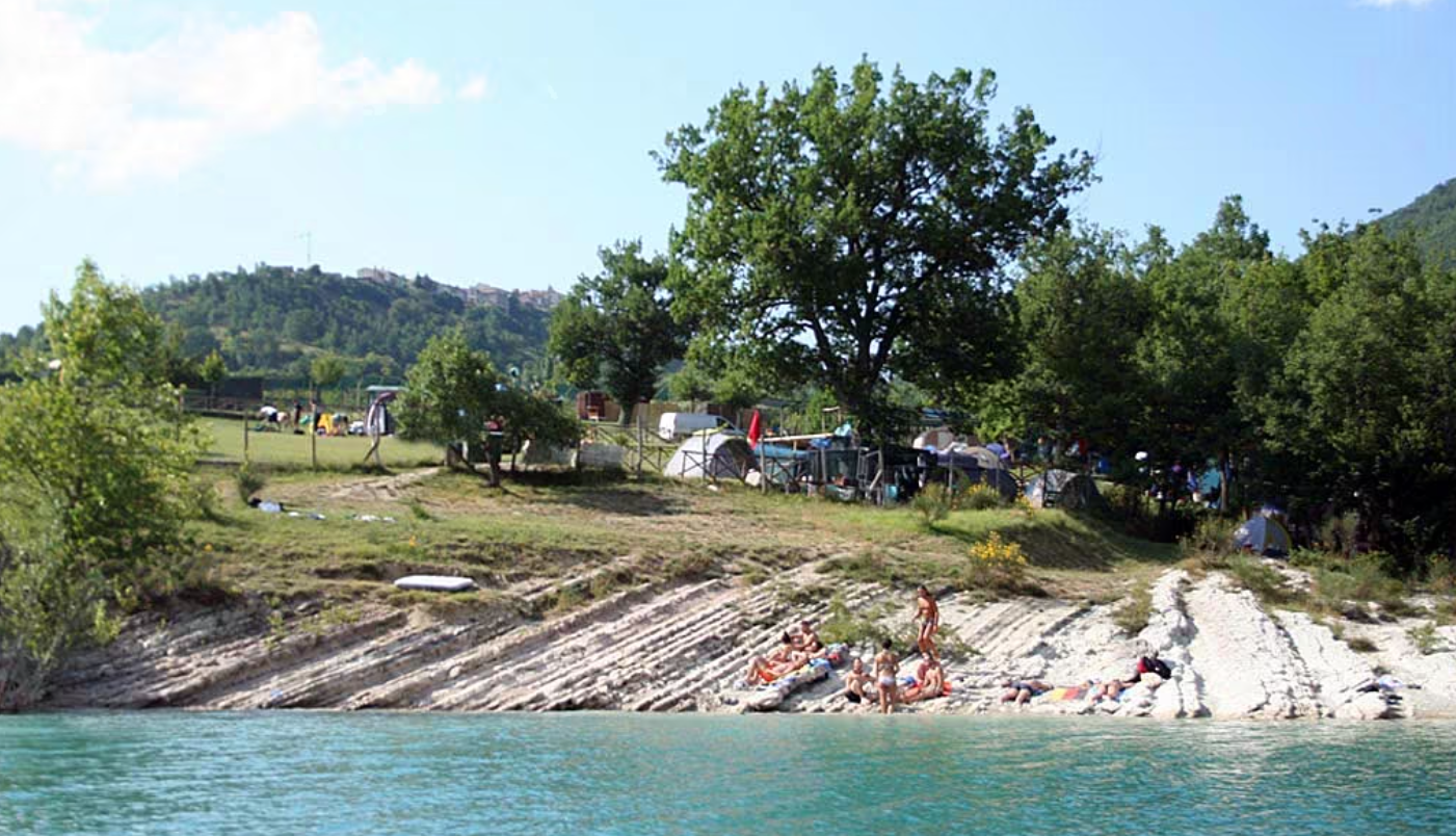 Horské výhľady na národný park Monti Sibillini poskytujú kempu Natura Camping v Le Marche (predtým Camping Ruffella Belvedere) pôsobivé kulisy. Tento kemp určený iba pre stany má priamy prístup k jazeru Fiastra, ktoré je ideálne na plávanie a jazdu na kajaku. Do jazera zasahuje trávnatá pláž s miernymi zátokami.