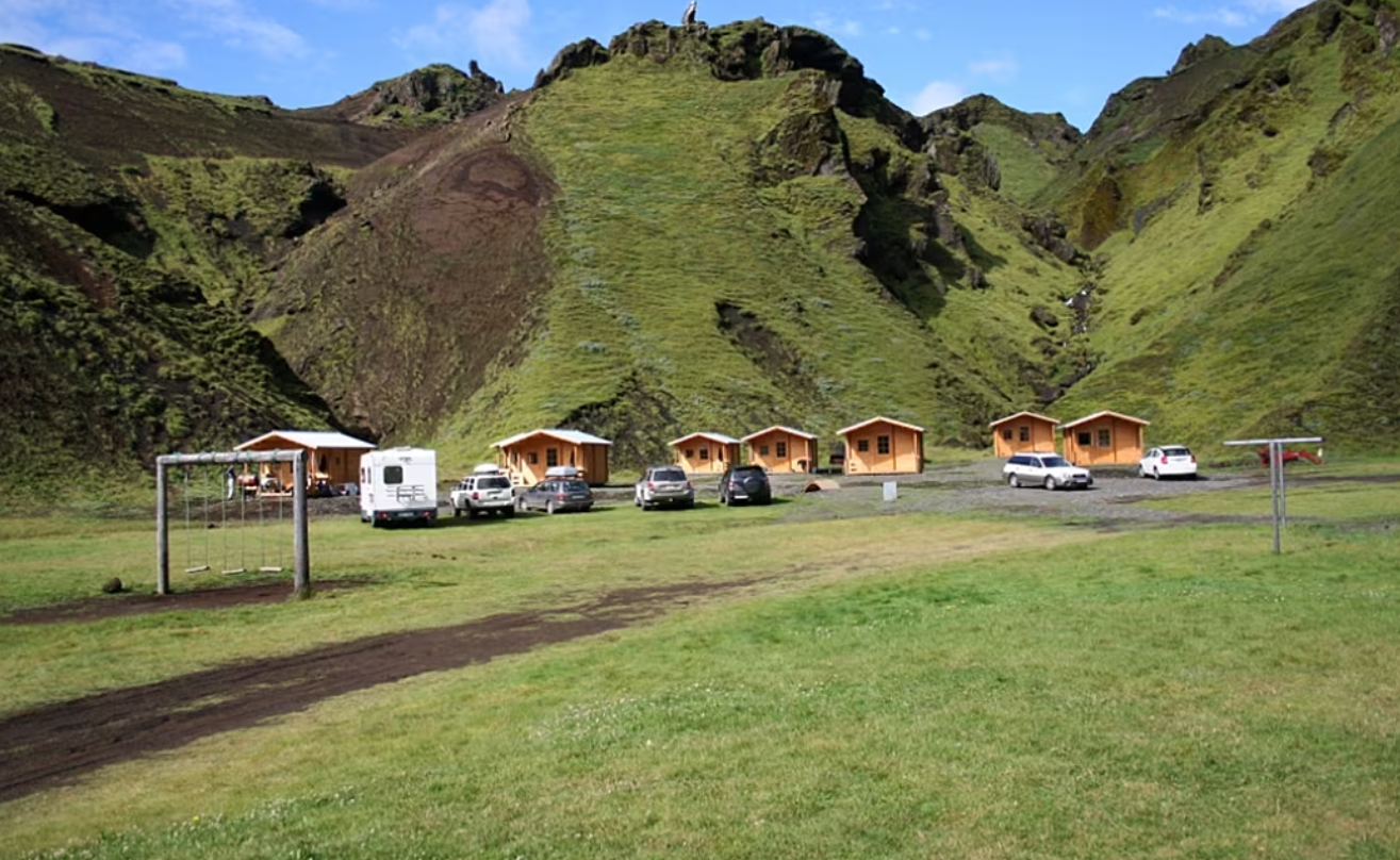 Jedlo sa tu podáva v jaskyni s pecou na drevo so sviečkami. Kemp je chránený pred vetrom, ale v divokejšom počasí sú k dispozícii aj základné chatky. Miesto sa nachádza asi dvadsať kilometrov od Víku, najjužnejšej dediny na Islande, a pre návštevníkov sú tu k dispozícii turistické trasy pre všetky úrovne.