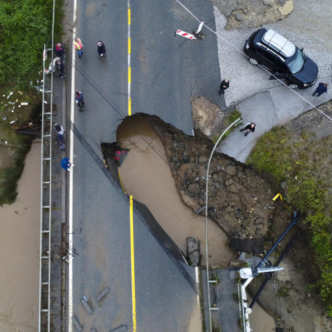 Most, ktorý poškodila povodňová voda v meste Adrani pri Kraljeve v Srbsku. FOTO: TASR/AP